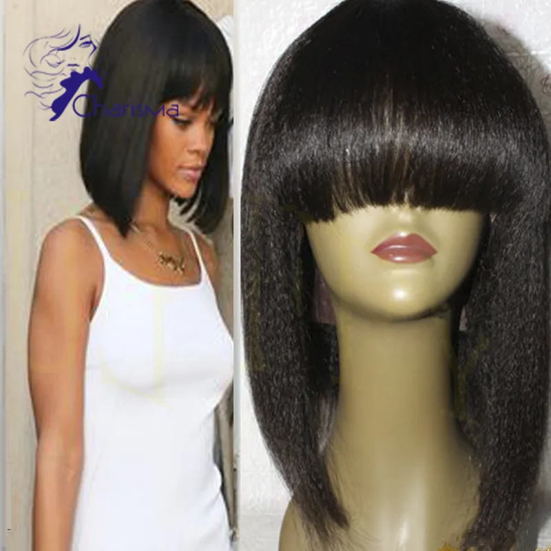 Rihanna Asymmetrische Bob Frisur Kurze Geraden Lace Front Perucke