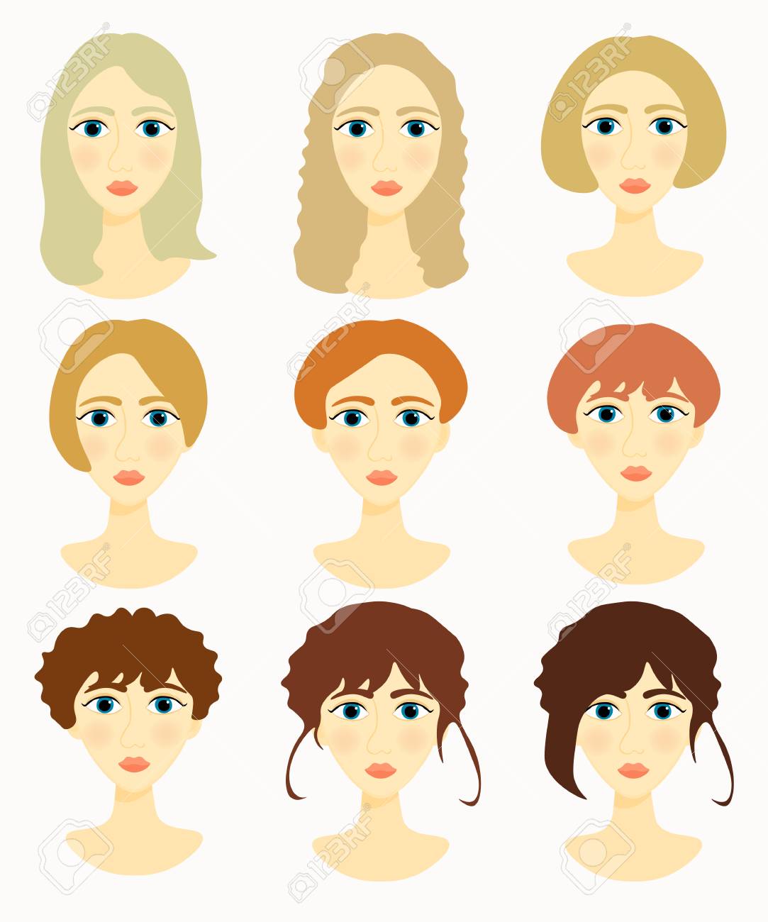 Gesichter Von Frauen Madchen Verschiedene Frisuren Vektor